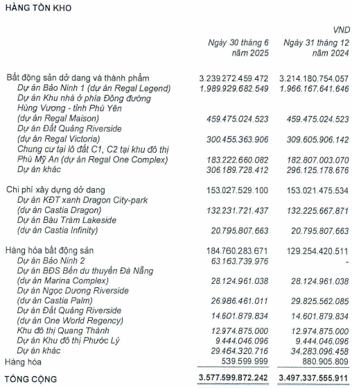 Thuyết minh hàng tồn kho của Regal Group tại ngày 30/06/2025