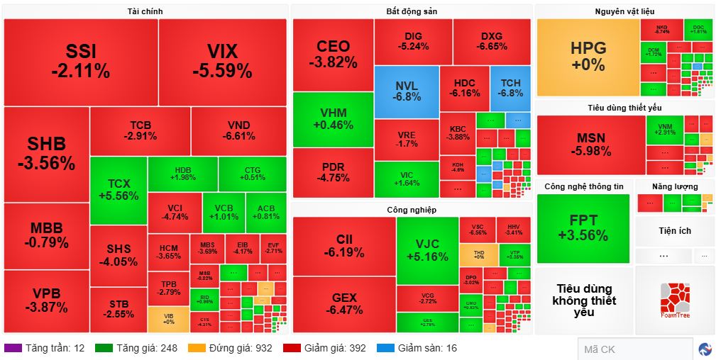 * Rớt gần 100 điểm, VN-Index có phiên giảm sâu nhất lịch sử. Phiên 20/10, thị trường chứng khoán chứng kiến cú sập mạnh. VN-Index giảm xấp xỉ 95 điểm từ vùng 1,730 điểm về còn 1,636 điểm. Đây là mức giảm tính theo điểm số vô tiền khoán hậu trong lịch thị trường chứng khoán Việt Nam. >>>