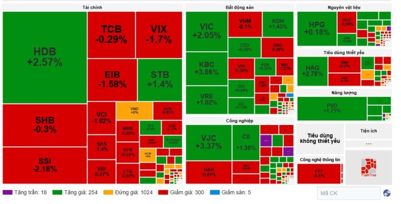 Về cuối phiên sáng, lực bán đã chiếm ưu thế rõ rệt khi số mã tăng đã vượt lên mức gần 370 mã giảm, áp đảo so với số mã...
