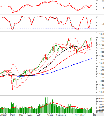 VN-Index hồi phục ấn tượng và trụ vững bên trên đường Middle của Bollinger Bands. Trong khi đó, HNX-Index đảo chiều tăng nhẹ và kết thúc chuỗi phiên giảm điểm...