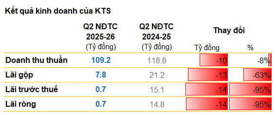 Lãi ròng quý 2 niên độ 2025-2026 của Đường Kon Tum giảm tới 95% so với cùng kỳ, khiến giá cổ phiếu mất gần 22% chỉ trong 1 tuần....