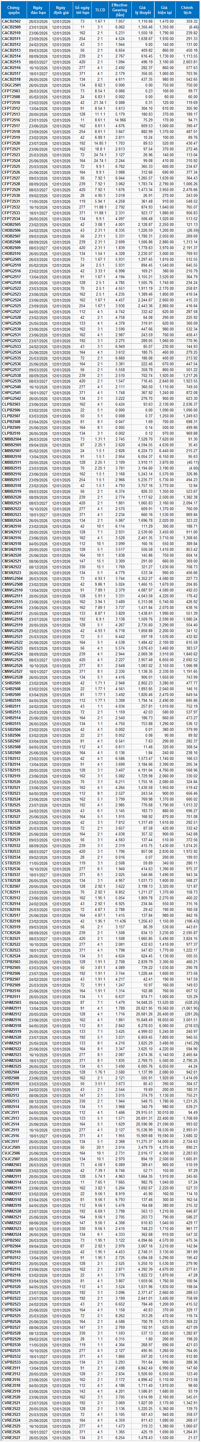 Dựa trên phương pháp định giá phù hợp với thời điểm khởi đầu là ngày 12/01/2026, mức giá hợp lý của các chứng quyền đang được giao dịch trên thị trường được thể hiện như sau: