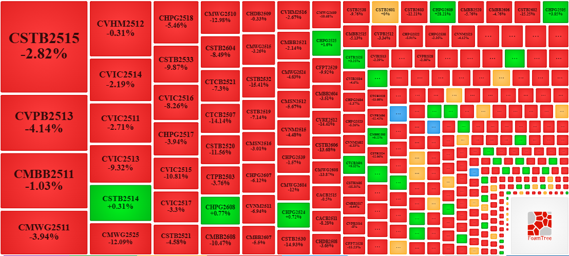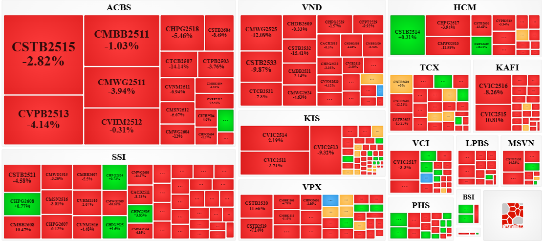 Trong phiên giao dịch ngày 06/03/2026 bên bán áp đảo thị trường khiến phần lớn các mã chứng quyền giảm giá. Cụ thể, các mã chứng quyền lớn trong nhóm giảm giá là CSTB2515, CVPB2513, CMBB2511, CMWG2511 và CVHM2512.