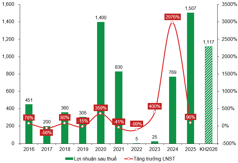 Lợi nhuận sau thuế DBC giai đoạn 2016-KH2026