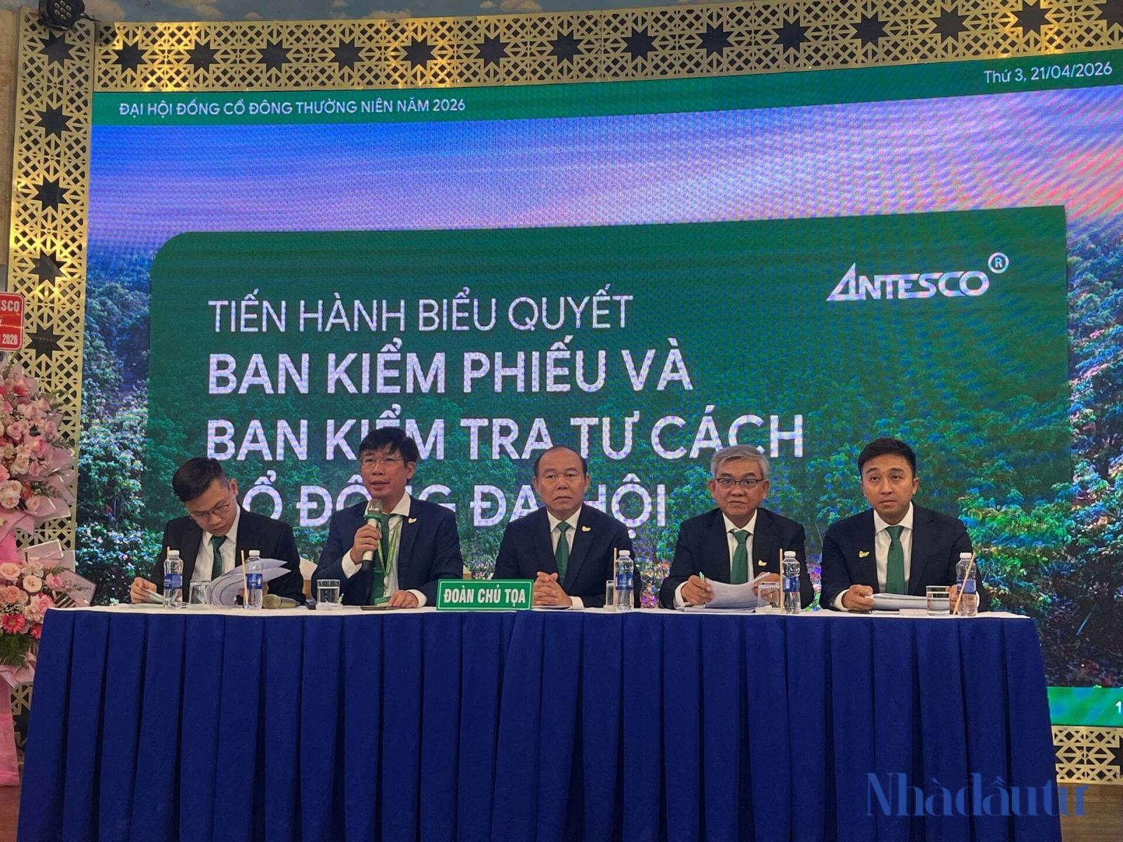 Ông Nguyễn Ngọc Bảo (chính giữa), Chủ tịch HĐQT Antesco và đoàn chủ tọa điều hành AGM. Ảnh: Liên Thượng.
