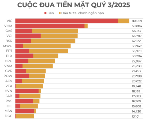 Vingroup bỏ xa đối thủ trong cuộc đua tiền mặt, 13 doanh nghiệp nắm giữ trên 20,000 tỷ đồng