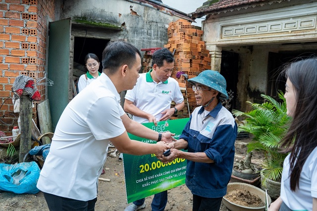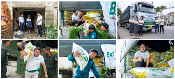 Những cơn bão liên tục càn quét qua nhiều địa phương từ Bắc – Trung, Tây Nguyên. Ở đó có không ít gia đình của chính cán bộ công nhân viên, những người đang trực tiếp lao động và đóng góp vào sự phát triển của công ty. Do đó, ngay sau khi cập nhật tình hình thực tế tại các địa phương, Công ty BAF đã khẩn trương triển khai các gói hỗ trợ bằng tiền mặt gửi đến gia đình các nhân sự công ty đang phải chịu thiệt hại bởi bão lũ. Bên cạnh đó, tập thể cán bộ nhân viên BAF trên toàn quốc cũng xây dựng quỹ chung, cùng nhau đóng góp để tiếp sức cho những người đồng nghiệp.