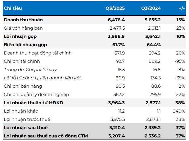 Trong kỳ, lợi nhuận gộp tăng 18,5% so với cùng kỳ, tương ứng tăng thêm 41,12 tỷ đồng, lên 263,91 tỷ đồng; doanh thu tài chính tăng 26,7%, tương ứng tăng thêm 1,09 tỷ đồng, lên 5,18 tỷ đồng; chi phí tài chính tăng 23,1%, tương ứng tăng thêm 12,75 tỷ đồng, lên 67,88 tỷ đồng; chi phí bán hàng và quản lý doanh nghiệp tăng 73%, tương ứng tăng thêm 74,91 tỷ đồng, lên 177,52 tỷ đồng và các hoạt động khác biến động không đáng kể.