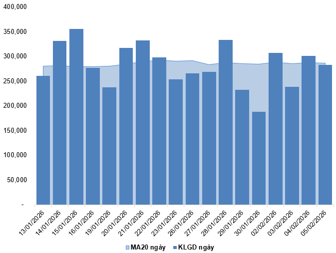 Khối lượng và giá trị giao dịch của thị trường phái sinh lần lượt giảm 6.32% và 6.41% so với phiên ngày 04/02/2026. Cụ thể, khối lượng giao dịch I1G2000 giảm 6.35% với 281,488 hợp đồng được khớp lệnh. Khối lượng giao dịch của I2G2000 đạt 143 hợp đồng, tăng 210.87%.