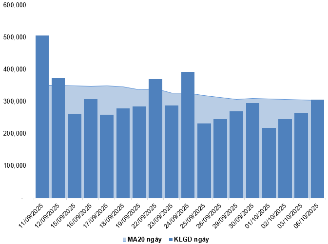Trong phiên giao dịch ngày 06/10/2025, VN30-Index tăng điểm mạnh đồng thời xuất hiện mẫu hình nến Hammer kèm theo khối lượng giao dịch vượt mức trung bình 20 phiên cho thấy nhà đầu tư đã giao dịch sôi động trở lại.