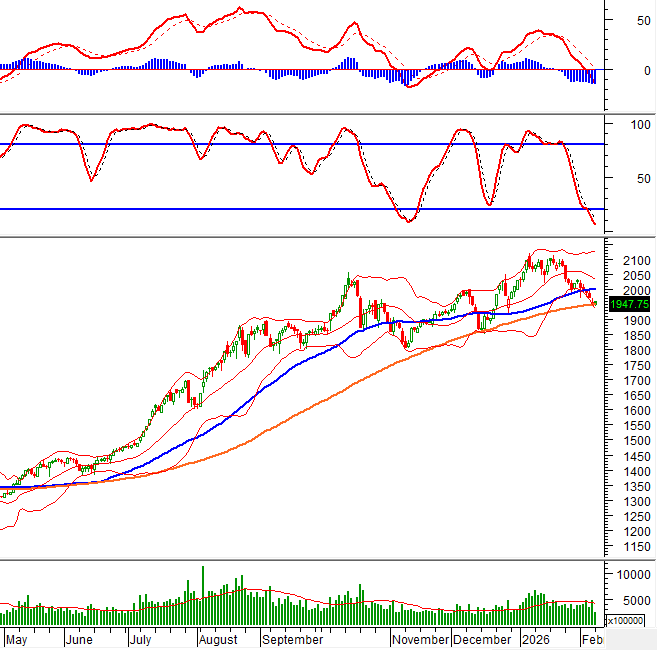 Trong phiên giao dịch ngày 09/02/2026, hợp đồng 41I1G2000 mở cửa với áp lực bán chiếm ưu thế khiến giá suy giảm và duy trì trạng thái điều chỉnh trong phần lớn phiên sáng. Bước sang phiên chiều, hợp đồng xuất hiện nhịp hồi phục nhưng đà tăng không bền vững khi lực Short nhanh chóng quay trở lại, khiến I1G2000 tiếp tục suy yếu và đóng cửa ở mức 1,955.7 điểm.