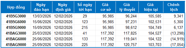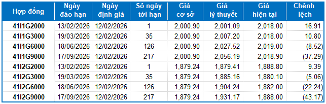 Dựa trên phương pháp định giá hợp lý với thời điểm khởi đầu ngày 12/02/2026, khung giá hợp lý của các hợp đồng tương lai đang được giao dịch trên thị trường được thể hiện như sau: