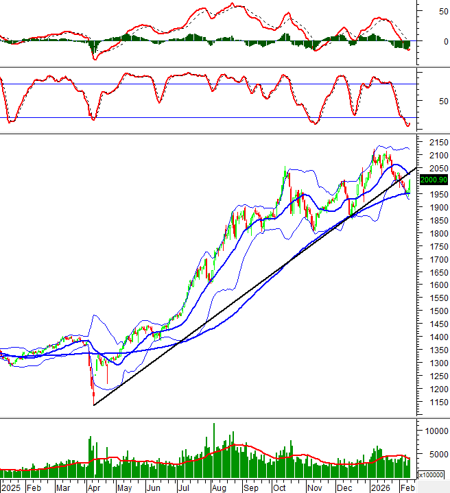 Trong phiên giao dịch ngày 11/02/2026, hợp đồng 41I1G2000 sớm bật tăng ngay từ phiên ATO với lợi thế áp đảo thuộc về phe Long giúp I1G2000 tăng vọt trong nửa đầu phiên sáng và dần chuyển sang trạng thái đi ngang trong nửa thời gian còn lại. Bước sang phiên chiều, tuy áp lực bán xuất hiện trở lại nhưng bên mua vẫn giữ được vị thế lấn lướt hơn đã kéo hợp đồng tương lai này tiếp tục tăng và đóng cửa ở mức cao nhất phiên tại 2,018 điểm, tăng 51.9 điểm.