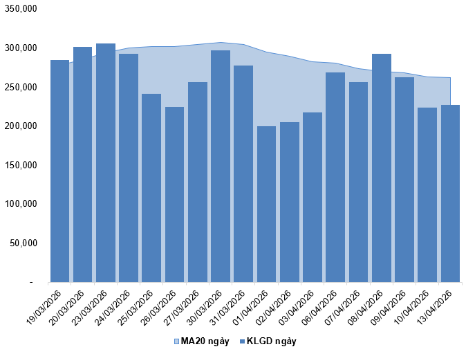 Trong phiên giao dịch ngày 13/04/2026, VN30-Index diễn biến giằng co đồng thời xuất hiện mẫu hình nến thân nhỏ cùng khối lượng giao dịch sụt giảm so với phiên trước cho thấy tâm lý khá thận trọng của nhà đầu tư.