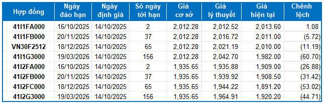 Chứng khoán phái sinh ngày 14/10/2025: Phe Long tiếp tục chiếm ưu thế
