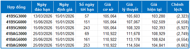 Dựa trên phương pháp định giá hợp lý với thời điểm khởi đầu ngày 15/01/2026, khung giá hợp lý của các hợp đồng tương lai đang được giao dịch trên thị trường được thể hiện như sau: