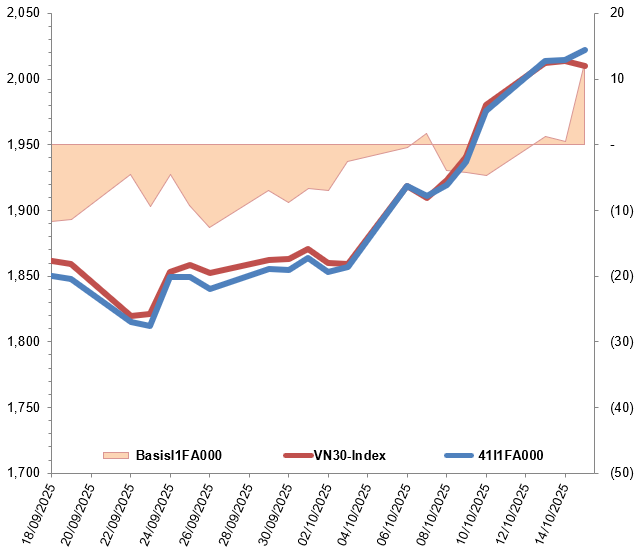 Chứng khoán phái sinh ngày 16/10/2025: Tâm lý phân vân vẫn còn trước phiên đáo hạn