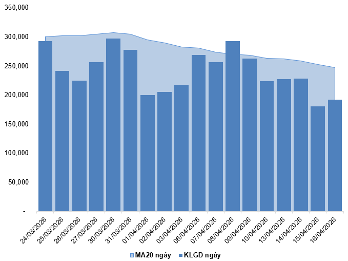 Trong phiên giao dịch ngày 16/04/2026, VN30-Index tăng phiên thứ 3 liên tiếp kèm theo khối lượng giao dịch vượt mức trung bình 20 phiên cho thấy tâm lý khá lạc quan của nhà đầu tư.