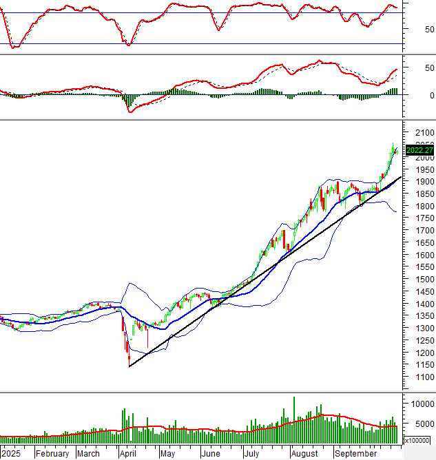 Hiện tại, chỉ số vẫn bám sát Upper Band của Bollinger Bands và tiếp tục duy trì xu hướng tăng trung hạn trong khi chỉ báo MACD vẫn tiếp tục tăng sau khi cho tín hiệu mua. Điều này cho thấy triển vọng tích cực vẫn hiện hữu.