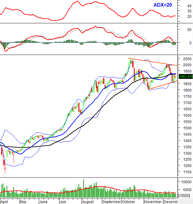 Hiện tại, chỉ báo ADX tiếp tục vận động dưới mức 20 cho thấy xu hướng hiện tại vẫn còn rất yếu. Khả năng cao diễn biến đi ngang với các phiên tăng giảm đan xen sẽ còn xuất hiện trong các phiên tới.