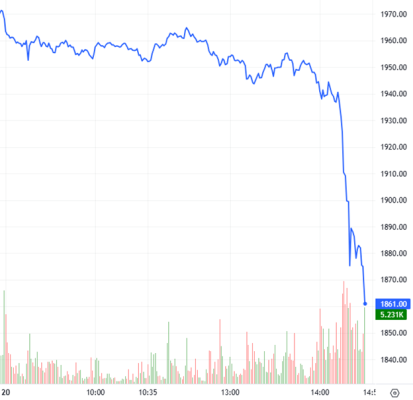 Trong phiên giao dịch ngày 20/10/2025, hợp đồng 41I1FB000 diễn biến giằng co kéo dài với lợi thế nghiêng về phe Short trong suốt phiên sáng. Bước sang phiên chiều, áp lực bán bất ngờ gia tăng mạnh khiến I1FB000 lao dốc không phanh và đóng cửa tại mức 1,861 điểm, giảm mạnh 107 điểm.