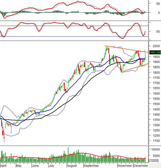 Hiện tại, VN30-Index tiếp tục nằm trên đường Middle của Bollinger Bands trong khi chỉ báo Stochastic Oscillator tiếp tục tăng sau khi cho tín hiệu mua. Điều này cho thấy triển vọng trong ngắn hạn đã dần khởi sắc hơn.
