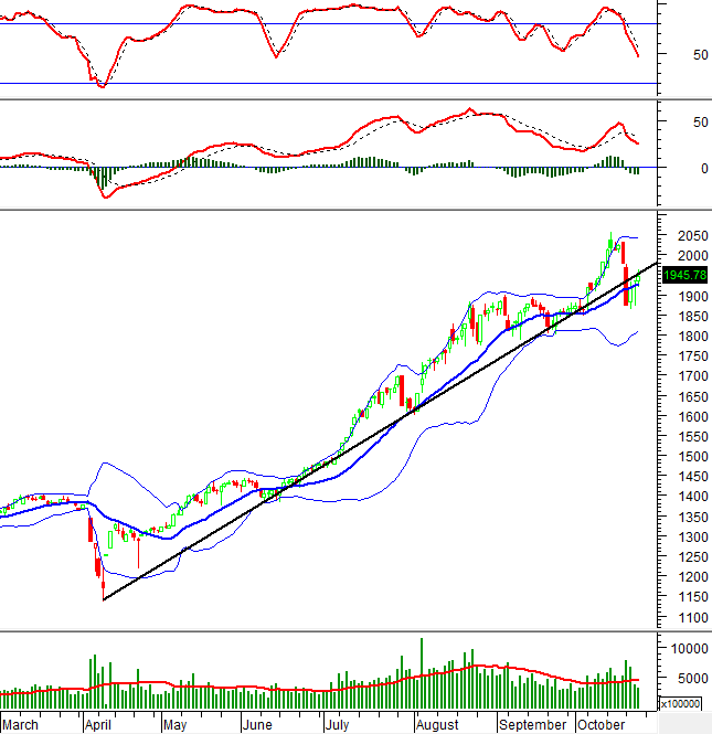 Hiện tại, chỉ số tiếp tục kiểm tra lại đường trendline tăng trung hạn trong khi chỉ báo Stochastic Oscillator và MACD tiếp tục suy yếu sau khi cho tín hiệu bán trước đó cho thấy rủi ro điều chỉnh ngắn hạn vẫn còn.