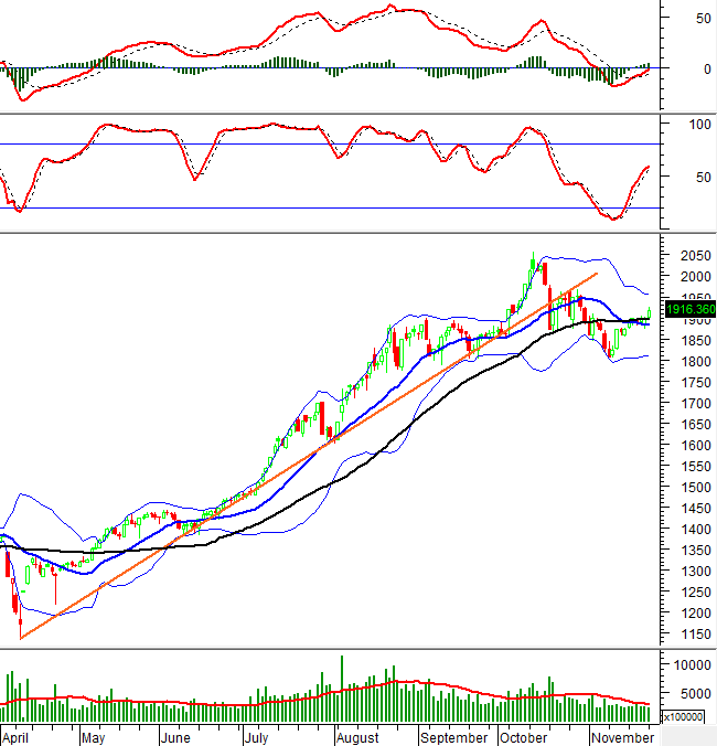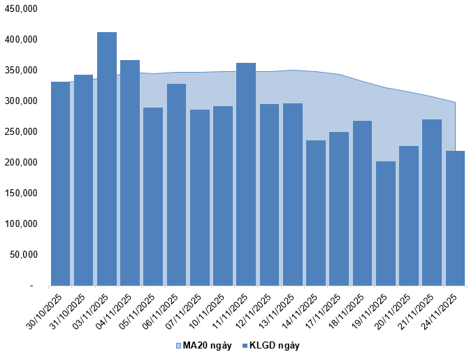 Trong phiên giao dịch ngày 24/11/2025, VN30-Index tăng điểm phiên thứ 3 liên tiếp và nằm trên đường SMA 50 ngày cho thấy tâm lý khá lạc quan của nhà đầu tư vẫn hiện hữu.