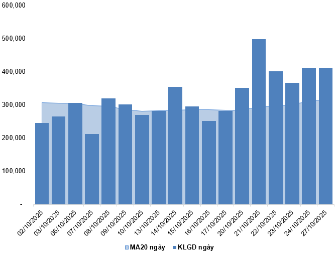 Khối ngoại quay lại mua ròng với tổng khối lượng mua ròng trong phiên giao dịch ngày 27/10/2025 đạt 646 hợp đồng.