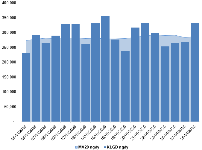 Trong phiên giao dịch ngày 28/01/2026, VN30-Index giảm điểm phiên thứ 4 liên tiếp kèm theo khối lượng giao dịch có sự gia tăng so với phiên trước đó cho thấy tâm lý khá bi quan của nhà đầu tư vẫn còn.