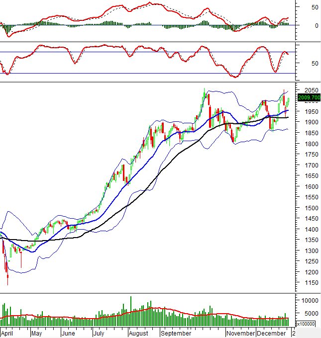 Hiện tại, chỉ số vẫn nằm trên đường Middle của Bollinger Bands trong khi chỉ báo MACD tiếp tục tăng sau khi cho tín hiệu mua. Điều này cho thấy triển vọng vẫn khá lạc quan trong ngắn hạn.