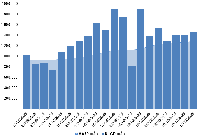 Khối lượng và giá trị giao dịch của thị trường phái sinh lần lượt tăng 11.87% và 10.43% so với phiên ngày 16/10/2025. Tính chung cả tuần, khối lượng và giá trị giao dịch tuần lần lượt tăng 4.03% và 8.45% so với tuần trước.