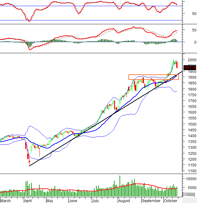 Bên cạnh đó, chỉ báo Stochastic Oscillator tiếp tục suy yếu sau khi cho tín hiệu bán trong vùng quá mua (Overbought). Nếu tình hình không có sự cải thiện và chỉ báo rơi khỏi vùng này trong các phiên tới thì rủi ro ngắn hạn sẽ tăng cao.