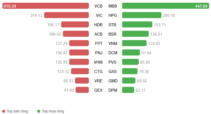 Giá trị giao dịch ròng theo mã cổ phiếu. Đvt: Tỷ đồng