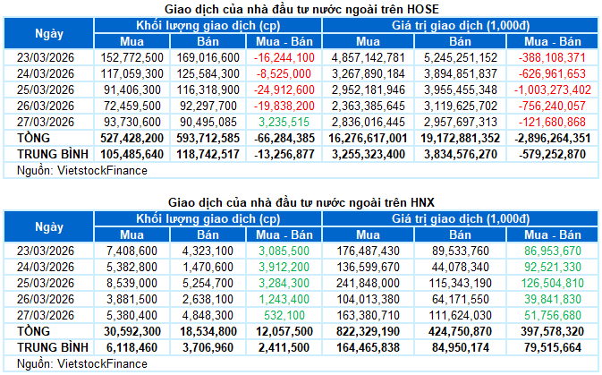 I. THỊ TRƯỜNG CHỨNG KHOÁN VIỆT NAM TUẦN 23-27/03/2026