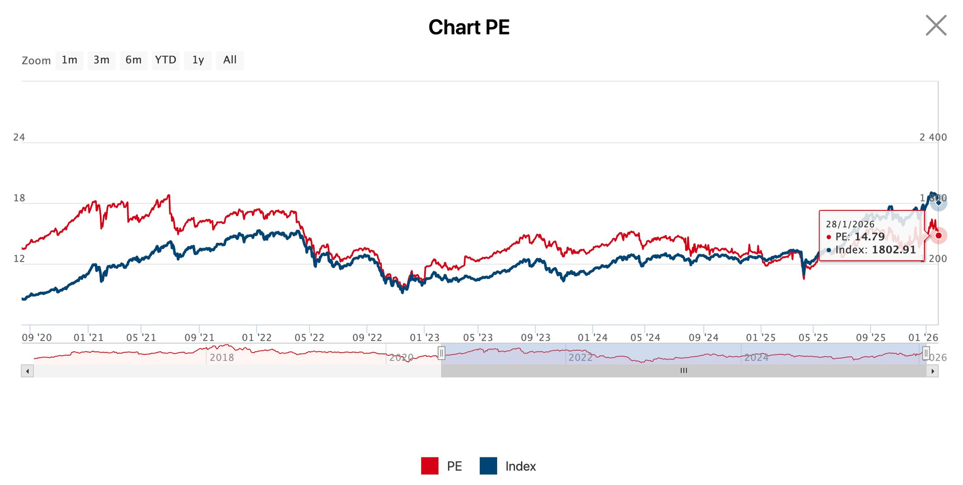 Mặt khác, trong giai đoạn nhóm cổ phiếu dẫn dắt kể trên nghỉ ngơi, dòng tiền có thể phân bổ và luân chuyển sang các nhóm cổ phiếu đang có câu chuyện hỗ trợ (KQKD Q4/2025 tích cực) hoặc cổ phiếu đang tích lũy nền trên đồ thị kỹ thuật, bao gồm các lĩnh vực Chứng khoán, Bán lẻ-Tiêu dùng, Công nghệ,…