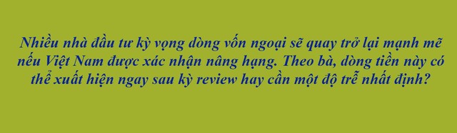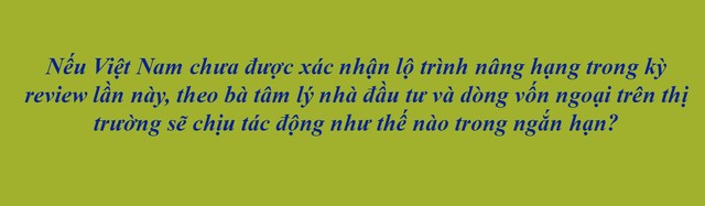 Sau những phản ứng ban đầu, câu hỏi đặt ra lúc này sẽ là chúng ta còn điểm nghẽn nào chưa xử lý để thỏa mãn các điều kiện nâng hạng. Mang tính định lượng hay định tính? Và khả năng xử lý triệt để là trong bao lâu? Đó sẽ là vấn đề nhà đầu tư quan tâm hơn cả, vì nó sẽ cho biết lộ trình tiếp theo đối với việc nâng hạng của Việt Nam là khi nào?