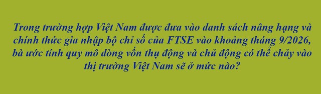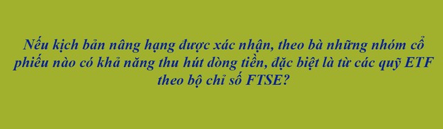 Như đã chia sẻ, trong trường hợp Việt Nam được FTSE Russell chính thức nâng hạng vào khoảng tháng 9/2026, dòng vốn ngoại nhiều khả năng không đến dồn dập tại một thời điểm mà sẽ phân bổ theo lộ trình. Ngay từ trước thời điểm nâng hạng, thị trường đã có xu hướng đón đầu với dòng tiền chọn lọc từ các quỹ chủ động. Khi quyết định có hiệu lực, dòng vốn sẽ tăng tốc rõ rệt, bao gồm cả quỹ chủ động quy mô lớn và một phần ETF chuẩn bị tái cơ cấu danh mục.