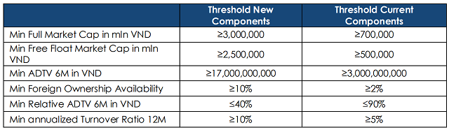 Theo hướng dẫn cập nhật của STOXX, một cổ phiếu chỉ được chọn mới nếu đạt: