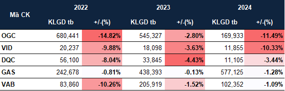 Ở chiều ngược lại, chỉ có 5 cổ phiếu luôn giảm trên sàn HOSE trong thời gian này, gồm OGC, VID, DQC, GAS và VAB.