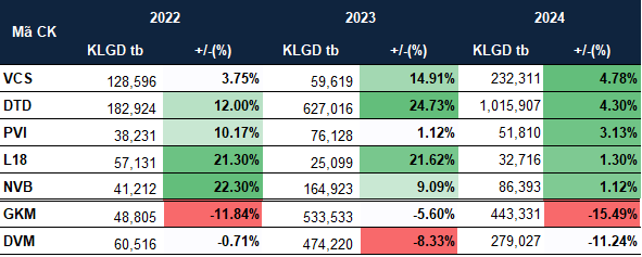 Trên sàn HNX, diễn biến cũng tương tự khi số cổ phiếu thường tăng chiếm ưu thế hơn . Cụ thể, nhóm thường tăng bao gồm 5 cổ phiếu là VCS, DTD, PVI, L18 và NVB. Ngược lại, nhóm giảm điểm chỉ có 2 cổ phiếu là GKM và DVM.