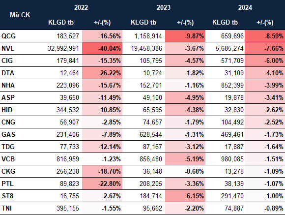 Cổ phiếu trên sàn HOSE giảm giá trong tháng 12 giai đoạn từ 2022 – 2024