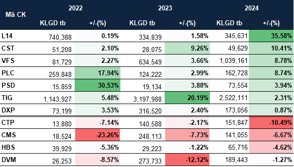 Trên sàn HNX, số cổ phiếu thường tăng được ghi nhận là 7, bao gồm L14, CST, VFS, PLC, PSD, TIG và DXP. Trong khi đó, chỉ có 4 cổ phiếu thường giảm là CTP, CMS, HBS và DVM.