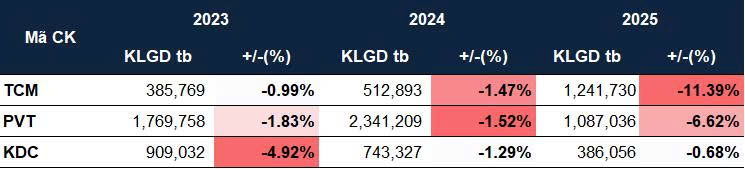Trong khi đó, số cổ phiếu thường giảm chỉ có 3, gồm TCM, PVTKDC.