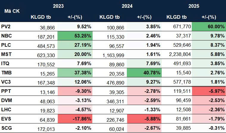 Cổ phiếu trên sàn HNX tăng/giảm giá trong tháng 1 giai đoạn từ 2023–2025