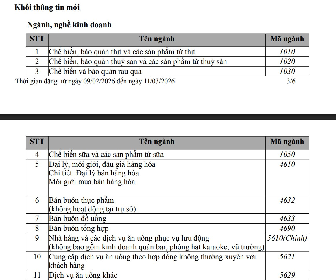 Ngành nghề kinh doanh của doanh nghiệp cũng tăng từ 31 lên 45. Một số ngành lõi là nhà hàng và các dịch vụ ăn uống phục vụ lưu động; chế biến, bảo quản thịt và các sản phẩm từ thịt; chế biến, bảo quản thủy sản và các sản phẩm thủy sản; chế biến sữa và các sản phẩm từ sữa…