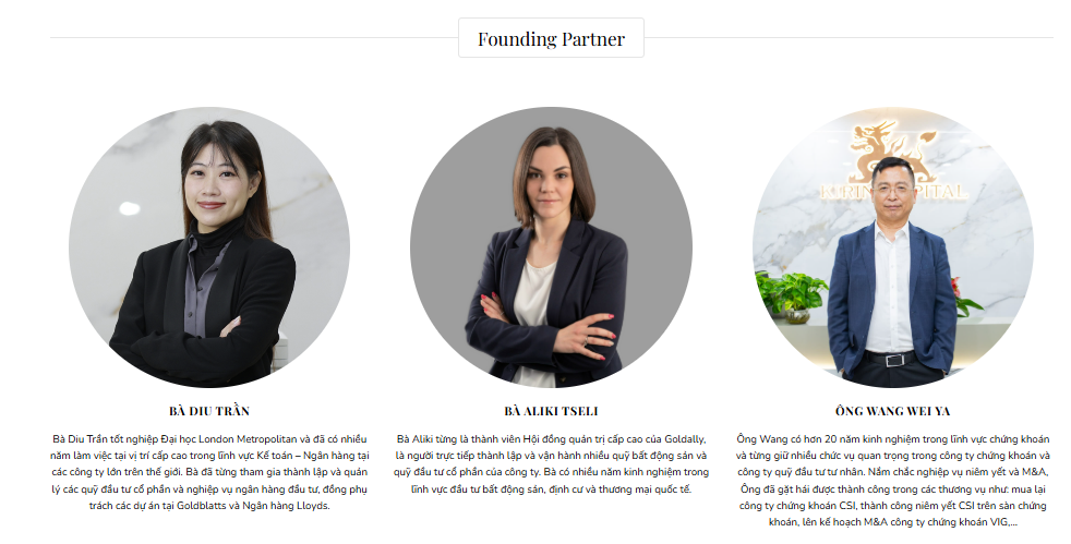 Theo giới thiệu trên website, Kirin Capital có đội ngũ đối tác sáng lập gồm bà Diu Trần, bà Aliki Tseli (Hy Lạp) và ông Wang Wei Ya (Trung Quốc). Trong đó, ông Wang Wei Ya hiện đang đảm nhiệm vị trí Chủ tịch HĐQT CSI.