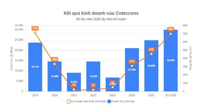 Công ty Cổ phần Xây dựng Coteccons (HoSE: CTD) vừa công bố tài liệu họp Đại hội đồng cổ đông (ĐHĐCĐ) thường niên cho năm tài chính 2026 (kéo dài từ 1/7/2025 đến 30/6/2026), hé lộ những mục tiêu kinh doanh cao nhất trong lịch sử hoạt động.