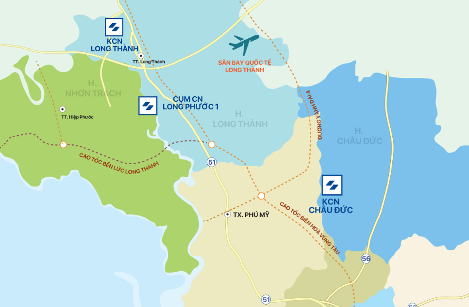 Trọng tâm đầu tư trong giai đoạn tới là dự án cụm công nghiệp Long Phước 1 quy mô 75ha tại xã Long Phước (Đồng Nai) với tổng mức đầu tư hơn 920 tỷ đồng. Dự án đã được giao đất gần 99% diện tích và đang được triển khai hạ tầng, dự kiến đưa vào khai thác cuối năm 2026. Theo lãnh đạo Công ty, dù quy mô không lớn nhưng vị trí nằm sát sân bay Long Thành giúp dự án có lợi thế đáng kể trong phát triển logistics, kho bãi và vận chuyển hàng hóa.