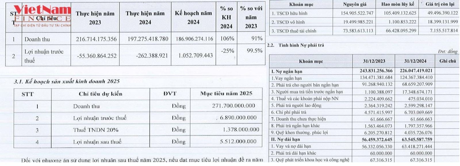 Theo báo cáo kiểm toán, năm 2022 DANAMECO lỗ hơn 100 tỷ đồng, năm 2023 tiếp tục âm hơn 55 tỷ đồng. Đến năm 2024, dù doanh thu thuần chỉ đạt 197,3 tỷ đồng, giảm 9% so với năm trước, nhưng công ty đã thu hẹp khoản lỗ trước thuế còn 262 triệu đồng, tức giảm gần 99,5%.